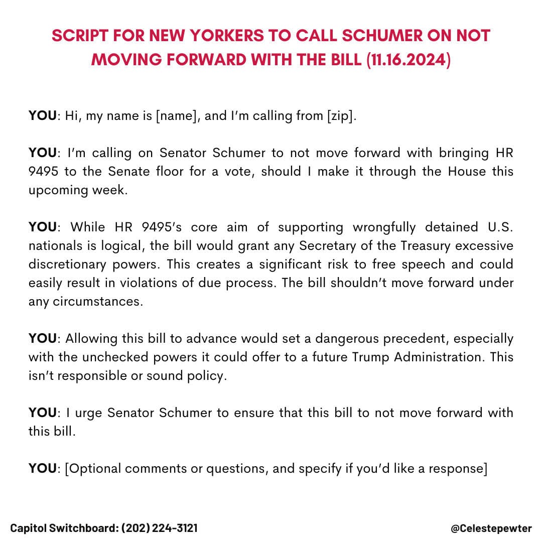 I've attached three scripts below, which were created and shared by former Dem staffer Celeste Pewter; one is for House reps, one is for Senators, and one is specific to New Yorkers for Senate leader Chuck Schumer.